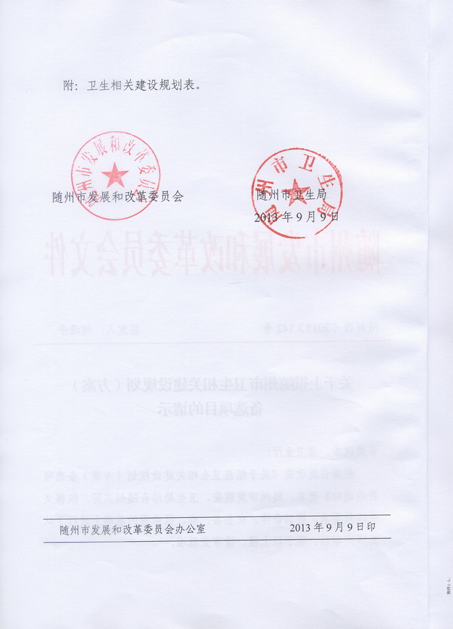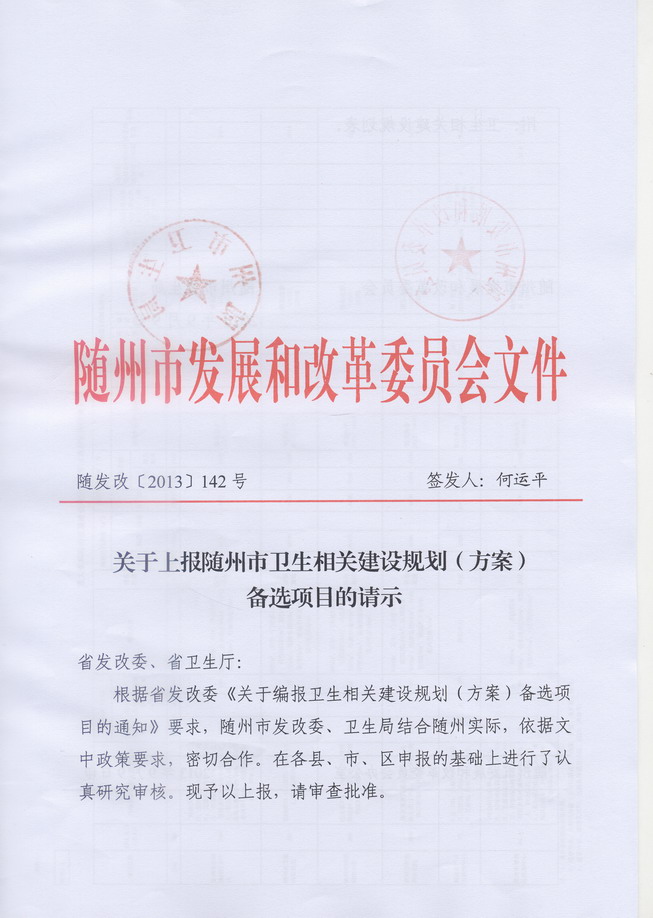 关于上报随州市卫生相关建设规划(方案)备选项目的请示