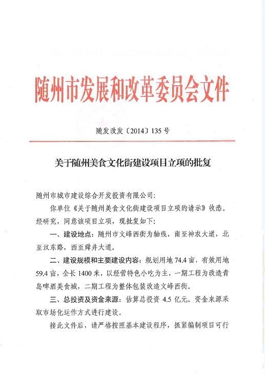 关于随州市主城区小十字街包装改造工程建设项目立项的批复
