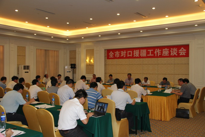 市政府副秘书长徐光喜主持座谈会。市发改委主任、市援疆办主任何运平介绍了我市对口援建工作情况、今年援疆工作思路和重点。各区市县及市直相关部门主要负责人就各自援疆项目进展情况作了交流发言。